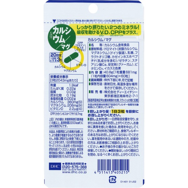 칼슘/마그 60정 DHC > 칼슘제