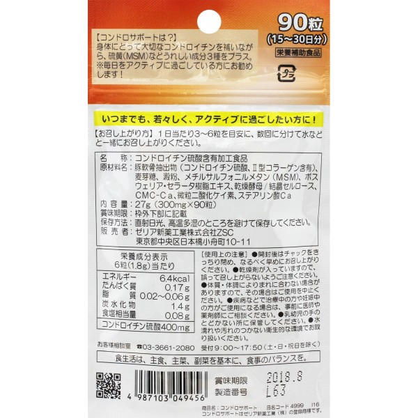 콘드로 서포트 90정 제리아신약 > 콘드로이틴
