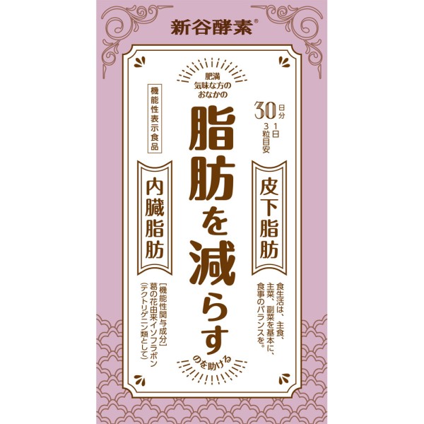 『新谷酵素葛の花』は、内臓脂肪と皮下脂肪を減らす働きを持った機能性素材「葛の花イソフラボン(テクトリゲニン類)」と、食べた物の消化を助ける「活きている酵素」を配合した機能性表示食品です。