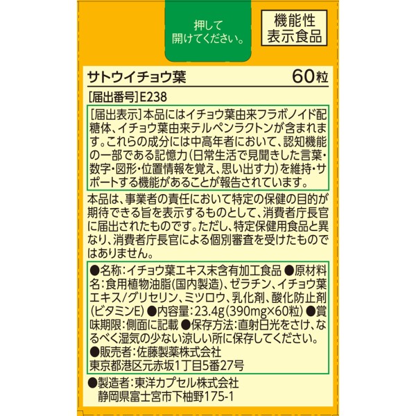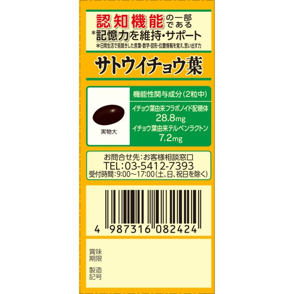 「認知機能の一部である記憶力を維持・サポートする」機能を持つ機能性表示食品です。