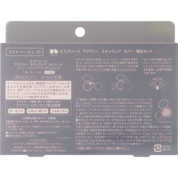 에스프리크 아쿠아리 스킨웨어 커버 한정 키트 코세 > 파운데이션 (파우더)
