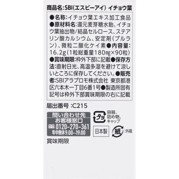 이쵸잎 30일분 90알 SBI파마 > 생활 습관 예방