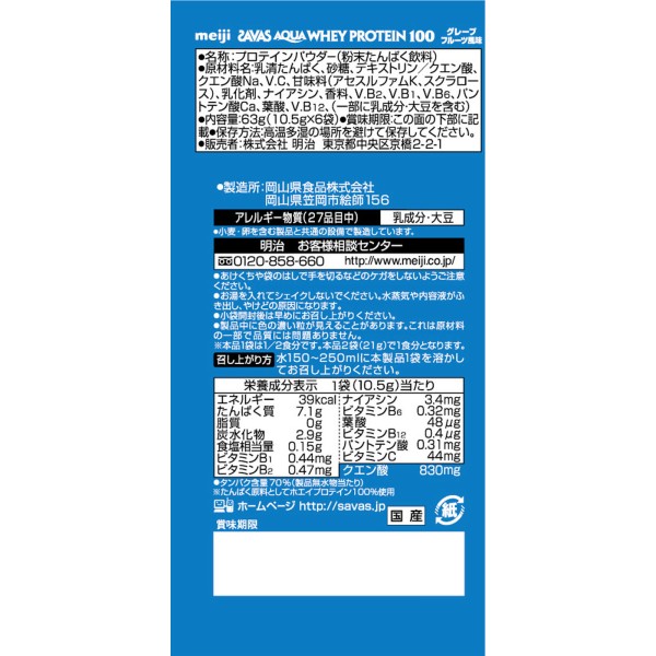 자바스 아쿠아 훼이프로테인100 그레이프프루트 트라이얼타입 10.5g×6 메이지(구 메이지유업) > 자바스