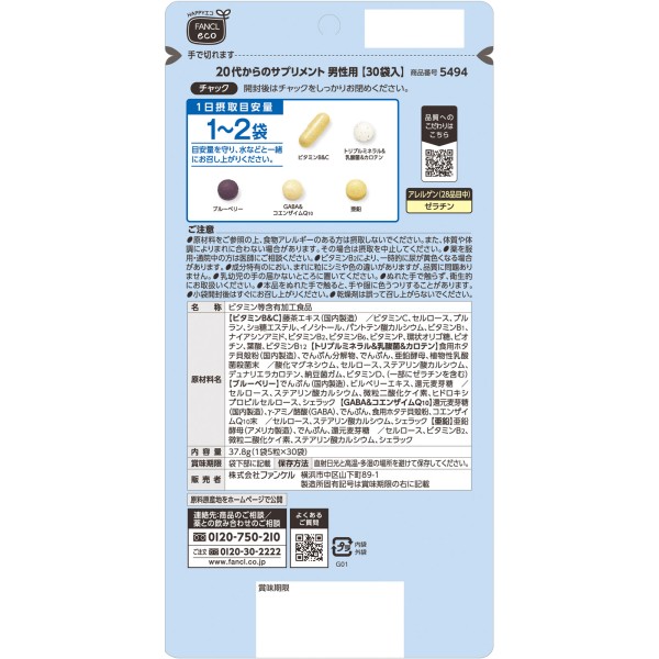20대부터의 서플리먼트 남성 30일분 30봉 판클 > 기타