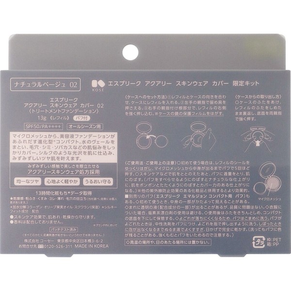 에스프리크 아쿠아리 스킨웨어 커버 한정 키트 코세 > 파운데이션 (파우더)