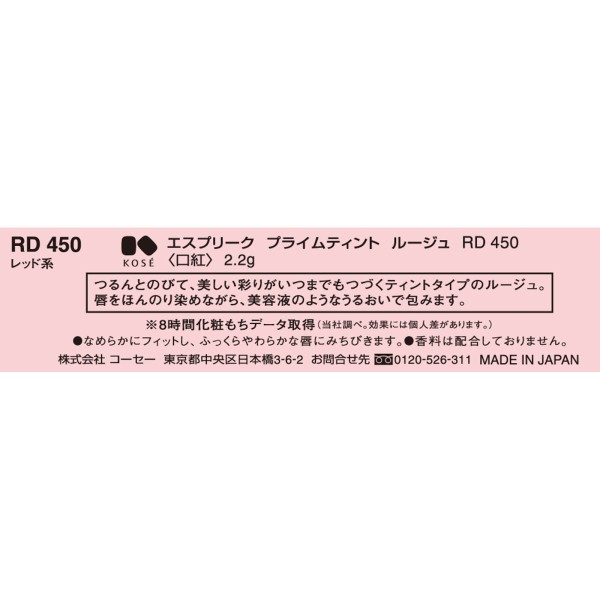 에스프리크 프라임틴트 루즈 RD450 레드계 2.2g 코세 > 입술(스틱)