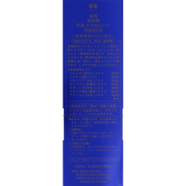 약용 세키세이 유액 EXC 140ml 코세 > 유액
