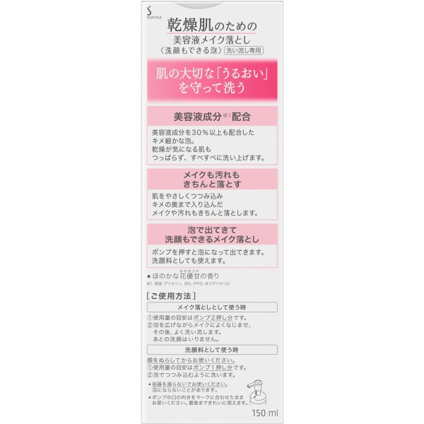 소피나 건성피부를 위한 미용액 메이크클렌저【세안도 되는 거품】 150ml 카오 소피나