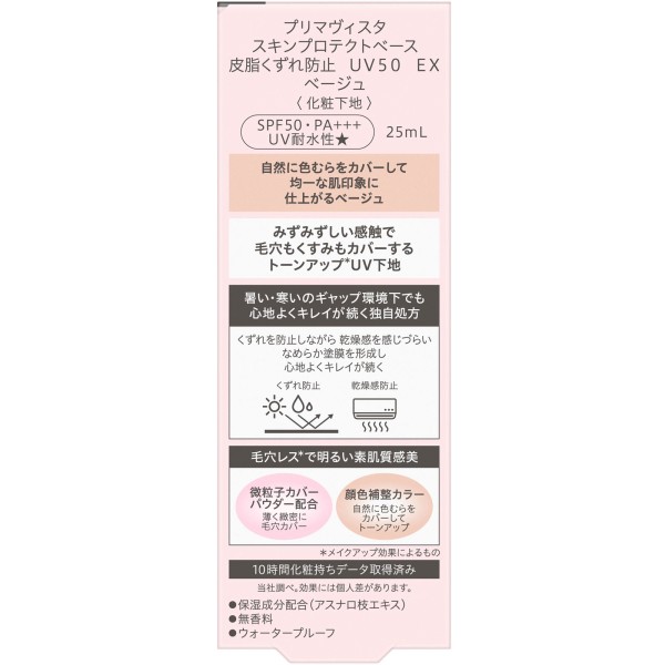 프리마비스타 스킨 프로텍트 베이스 피지 무너짐 방지 UV50 EX 베이지 25ml 카오 소피나 > 메이크업 베이스