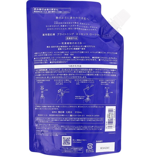 약용 설기정 브라이트닝 에센스 로션 (리필) 310ml 코세 > 화장수
