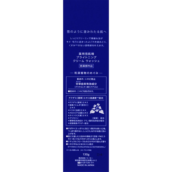 약용 설기정 브라이트닝 크림 워시 130g 코세 > 세안료(튜브)