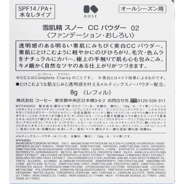 설기정 스노우CC파우더 002 8g 코세 > 파운데이션 (파우더)