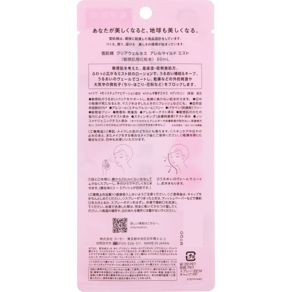 세키세이 클리어웰니스 알레르 마일드 미스트 80ml 코세 > 화장수