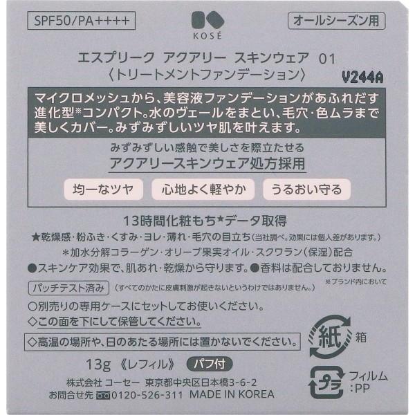 에스프리크 아쿠아리 스킨웨어 001 13g 코세 > 파운데이션 (리퀴드·젤·크림)