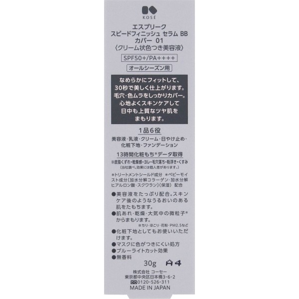 에스프리크 스피드 피니시 세럼 BB 커버 01 라이트 베이지 30g 코세 > 파운데이션 (BB)
