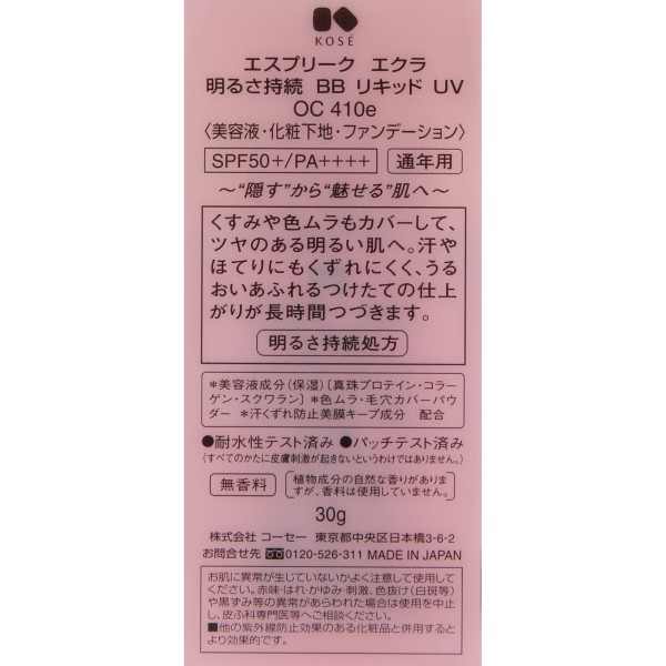 에스프리크 에클라 밝기 지속 BB 리퀴드 UV OC410e 오크르 30g 코세 > 파운데이션 (리퀴드·젤·크림)