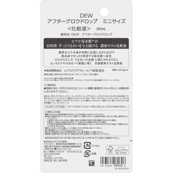 DEW 애프터 글로우 드롭 미니 사이즈 30ml 가네보 > 화장수