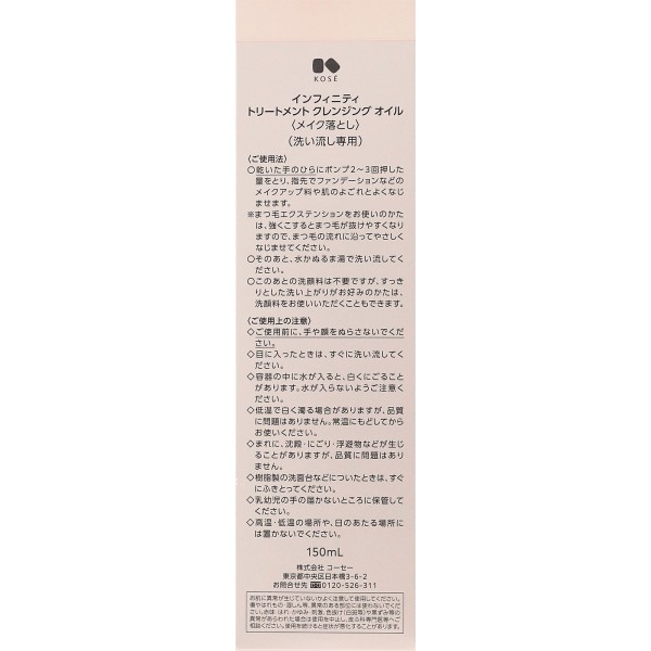 인피니티 트리트먼트 클렌징 오일 150ml 코세 > 메이크업 리무버 (크림)