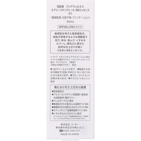 세키세이 클리어웰니스 에어리 스킨 베일 BB 에센스 01 약간 밝은 자연 피부색 30ml 코세 > 파운데이션 (BB)