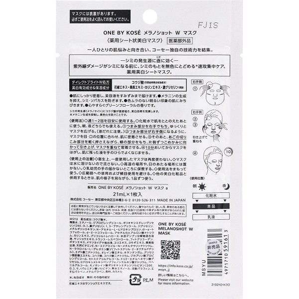 ONE BY KOSE 멜라노샷 W 마스크 1매 21ml 코세