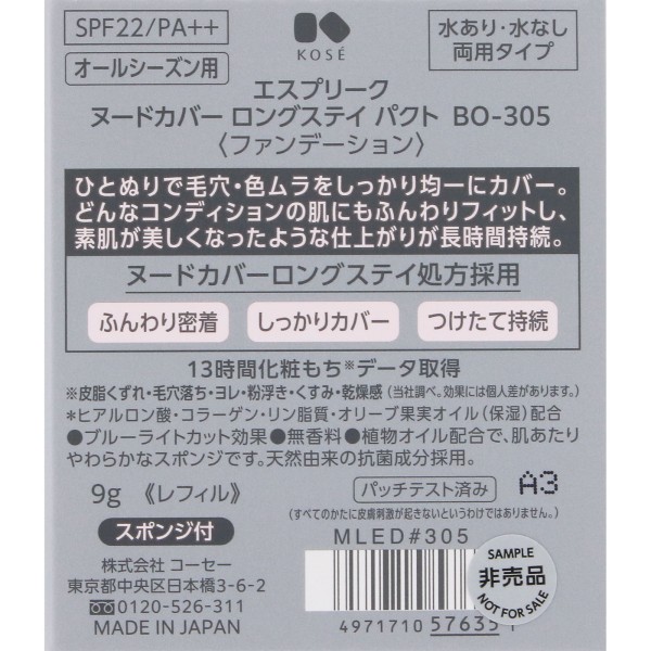 에스프리크 누드 커버 롱스테이 팩트 BO-305 베이지 오크르 9g 코세 > 파운데이션 (파우더)