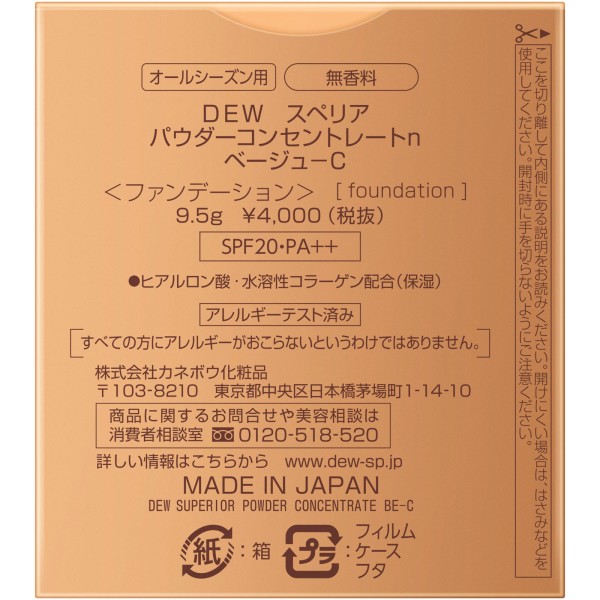 DEWS 파우더 콘센트레이트 n BEC 9.5g 가네보 > 파운데이션 (파우더)