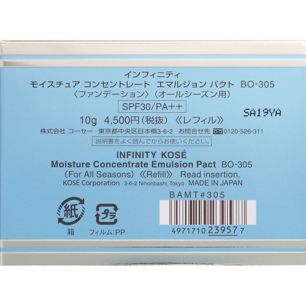 인피니티 모이스처 콘센트레이트 에멀젼 팩트 (리필) 305 베이지 오크르 10g 코세 > 파운데이션 (기타)