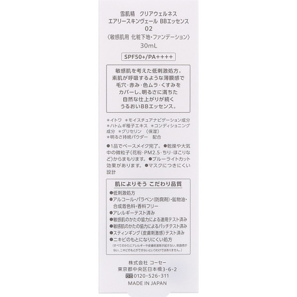 설기세이 클리어웰니스 에어리 스킨베일 BB에센스 02 보통 밝기의 자연스러운 색 30mL 코세 > 파운데이션 (BB)