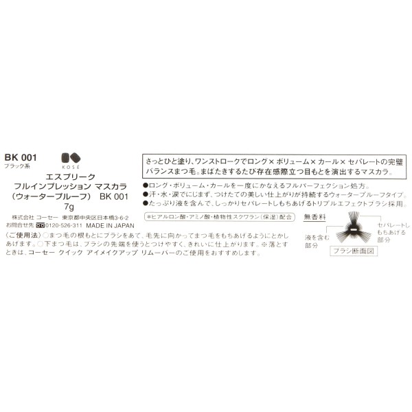 에스프리크 풀임프레션 마스카라 (워터프루프) BK001 7g 코세 > 눈(마스카라)