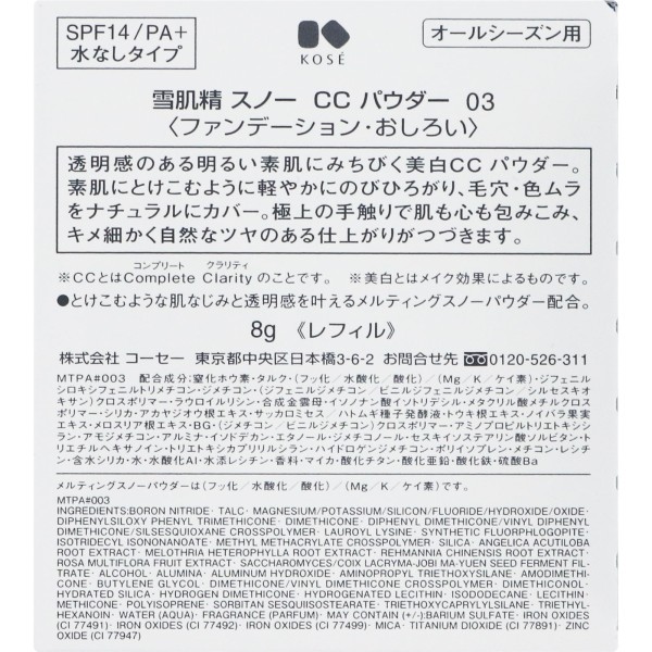 설기세이 스노우 CC파우더 003 8g 코세 > 파운데이션 (파우더)