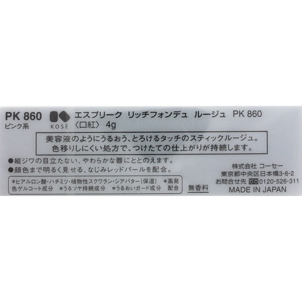 에스프리크 리치 퐁듀 루즈 PK860 핑크계 4g 코세 > 입술(스틱)