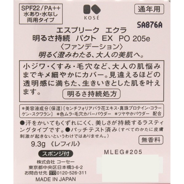에스프리크 에클라 밝기 지속 팩트 EX PO205e 핑크 오클 9.3g 코세 > 파운데이션 (파우더)