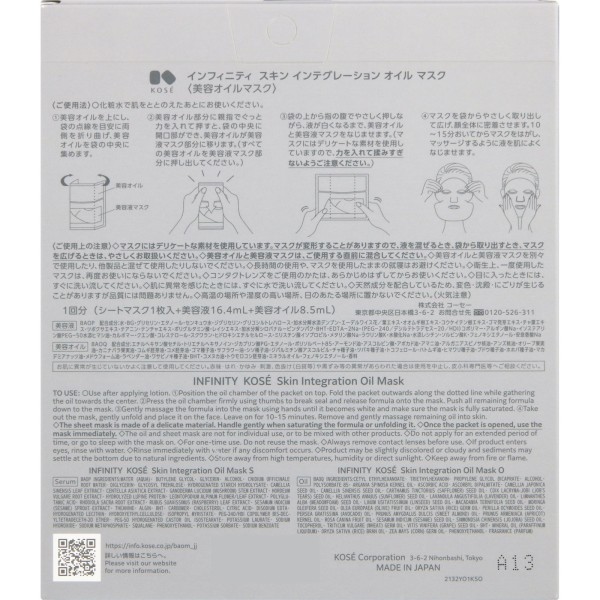 인피니티 스킨 인테그 오일 마스크 1매 24mL 코세 > 미용액