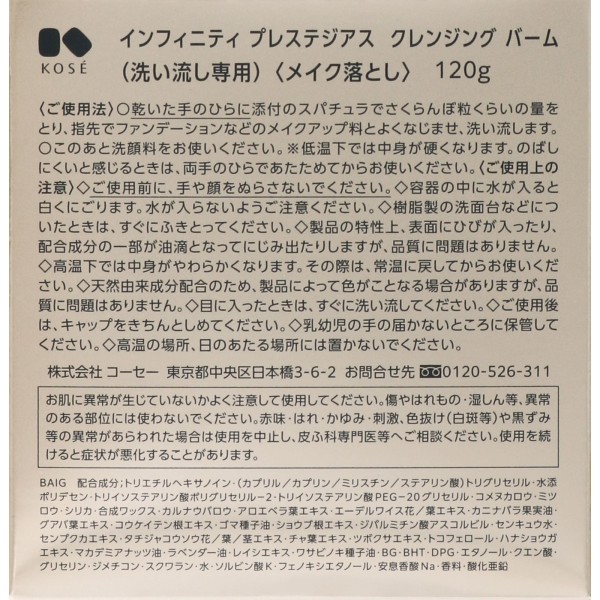인피니티 프레스티지어스 클렌징 밤 120g 코세 > 메이크업 리무버 (기타)