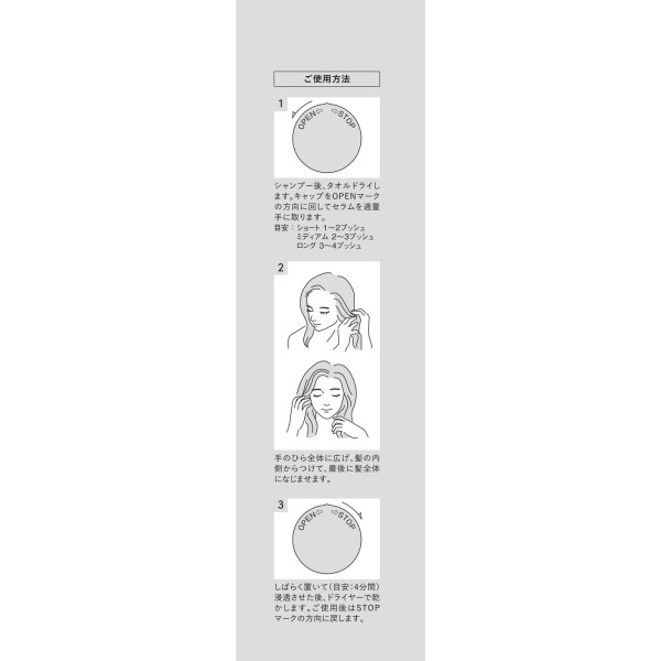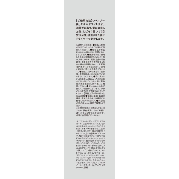 低分子ペプチド*配合で髪の深部まで補修。4分間置いてじっくり浸透させる、洗い流さないヘアセラム。しなやかでなめらかな髪に導きます。