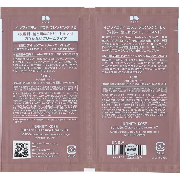 인피니티 에스테 클렌징 EX (트라이얼) 15ml×2 코세 > 기타