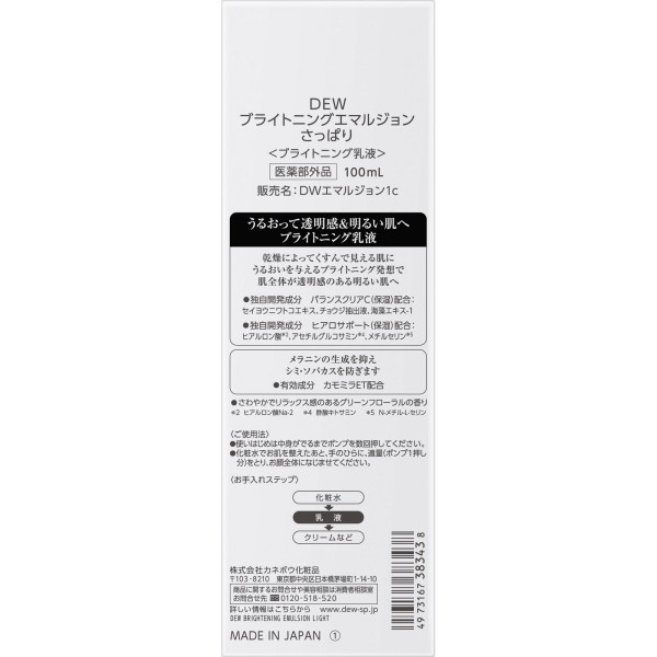 DEW 브라이트닝 에멀젼 산뜻함 100ml 가네보 > 유액
