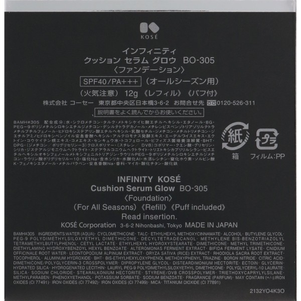 인피니티 쿠션 세럼 글로우 (리필) BO-305 베이지 오클 12g 코세 > 파운데이션 (리퀴드·젤·크림)