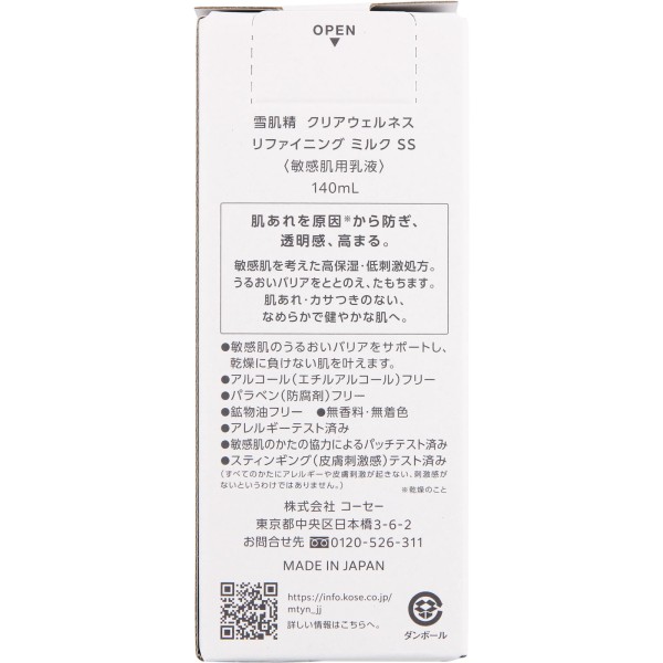 설기정 클리어 웰니스 리파이닝 밀크 SS 140ml 코세 > 유액