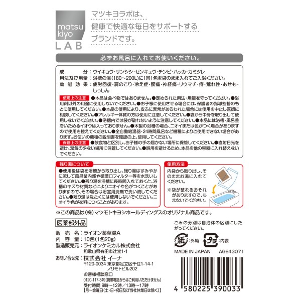 마츠키요 LAB 생약 욕용제 약초탕 10포입 > 고기능 분말
