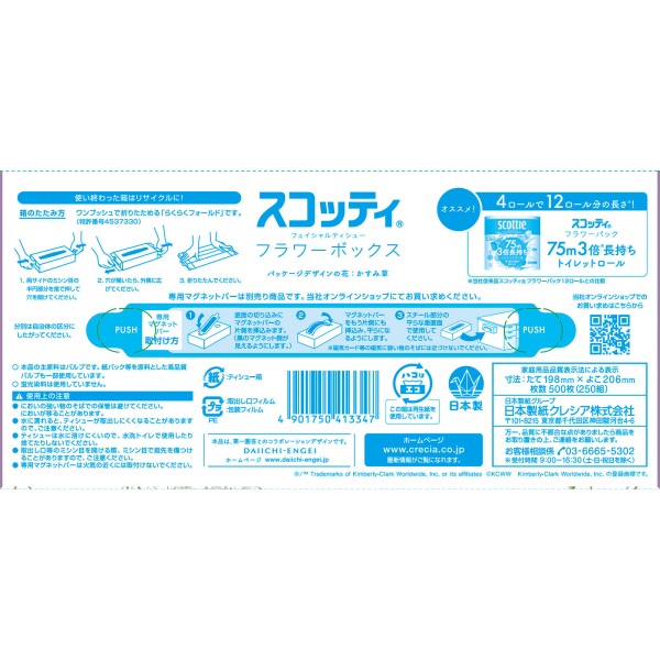 스코티 플라워 박스 티슈 250조 일본제지 크레시아