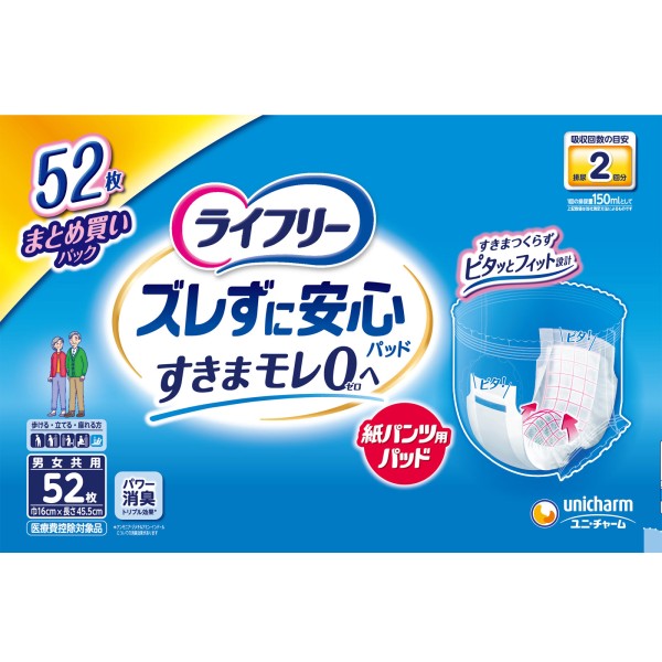 라이프리 틀어지지 않는 안심 종이 팬티 전용 소변 패드 52매 유니참 > 팬티용 (남녀 공용)