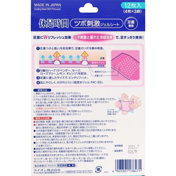 휴족시간 지압 젤 시트 발바닥 냉각 시트 12매 라이온 > 시트 타입