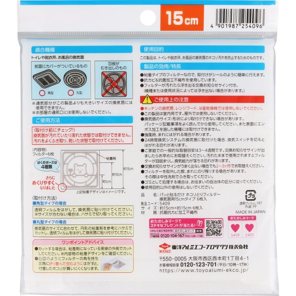 붙이기만 하면 되는 먼지 제거 환기팬용 15cm 6매입 도요 알루미늄 호일 프로덕트 > 기타