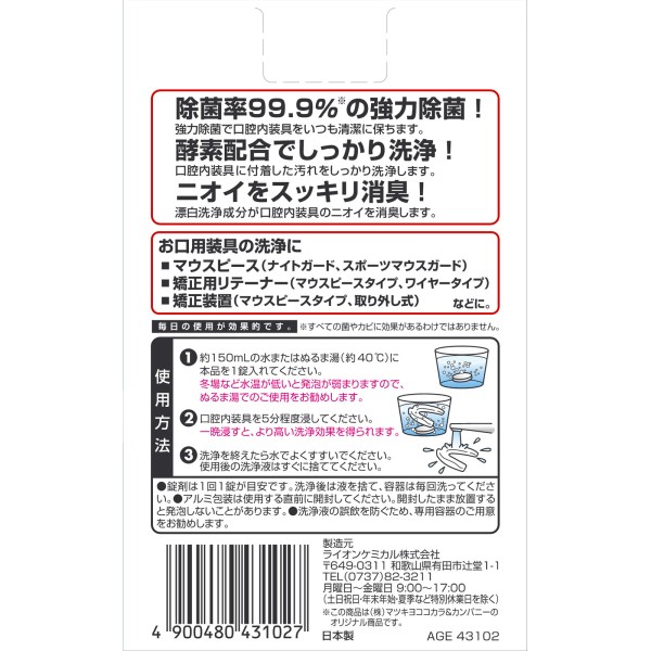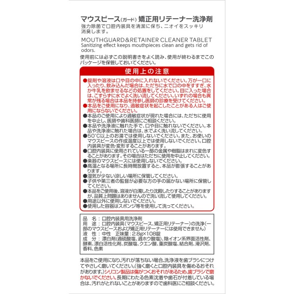 마츠키요 마우스피스(가드) 교정용 리테이너 세정제 108정 > 마우스피스·리테이너 세정제