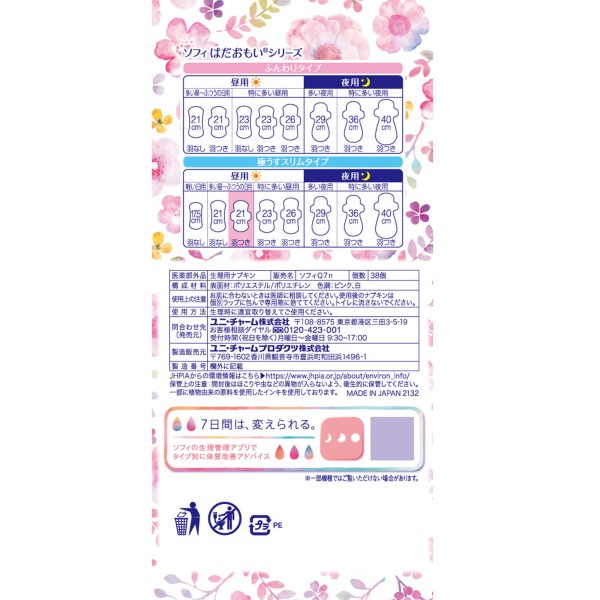 소피 하다오모이 극 얇은 슬림 210 날개 달린 38매 유니참 > 하다오모이