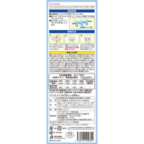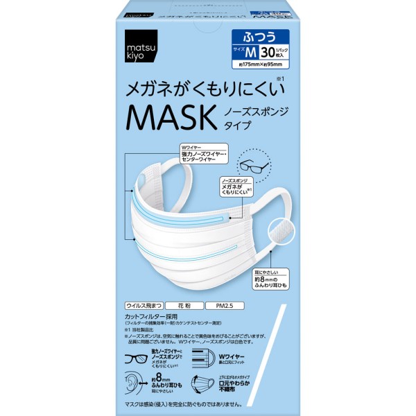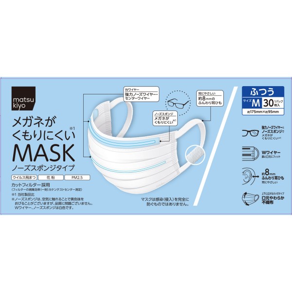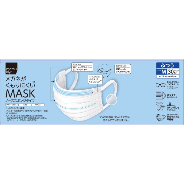 마츠키요 안경이 흐려지기 어려운 마스크 보통 사이즈 30매 > 대용량