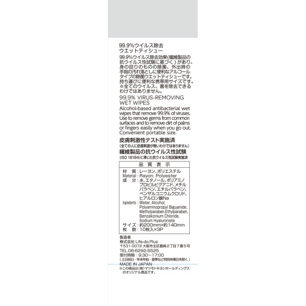 마츠키요 바이러스 제거 웨트 티슈 알코올 10매×3개 > 제균