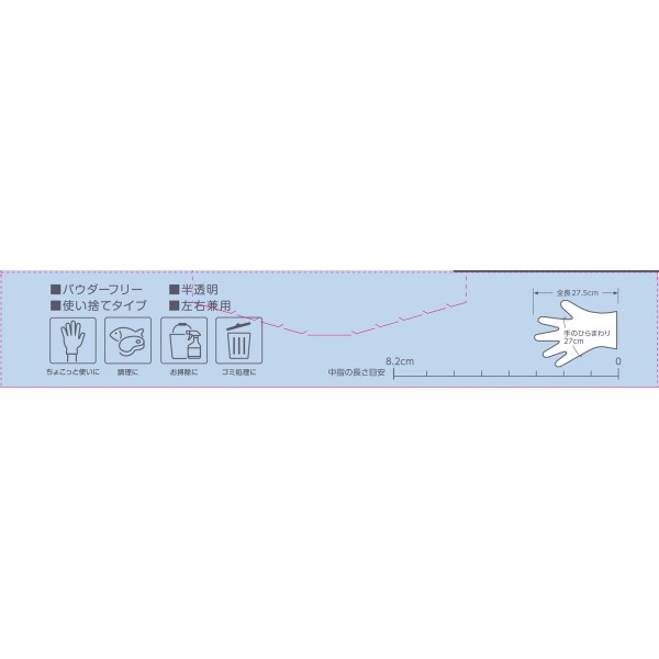 ポリエチレン製使いきり手袋。ワイドな形状で、着脱がスムーズです。簡易的な作業に適しています。