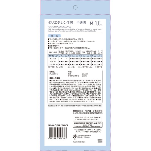 마츠키요 폴리에틸렌 장갑 M 100매 > 폴리에틸렌